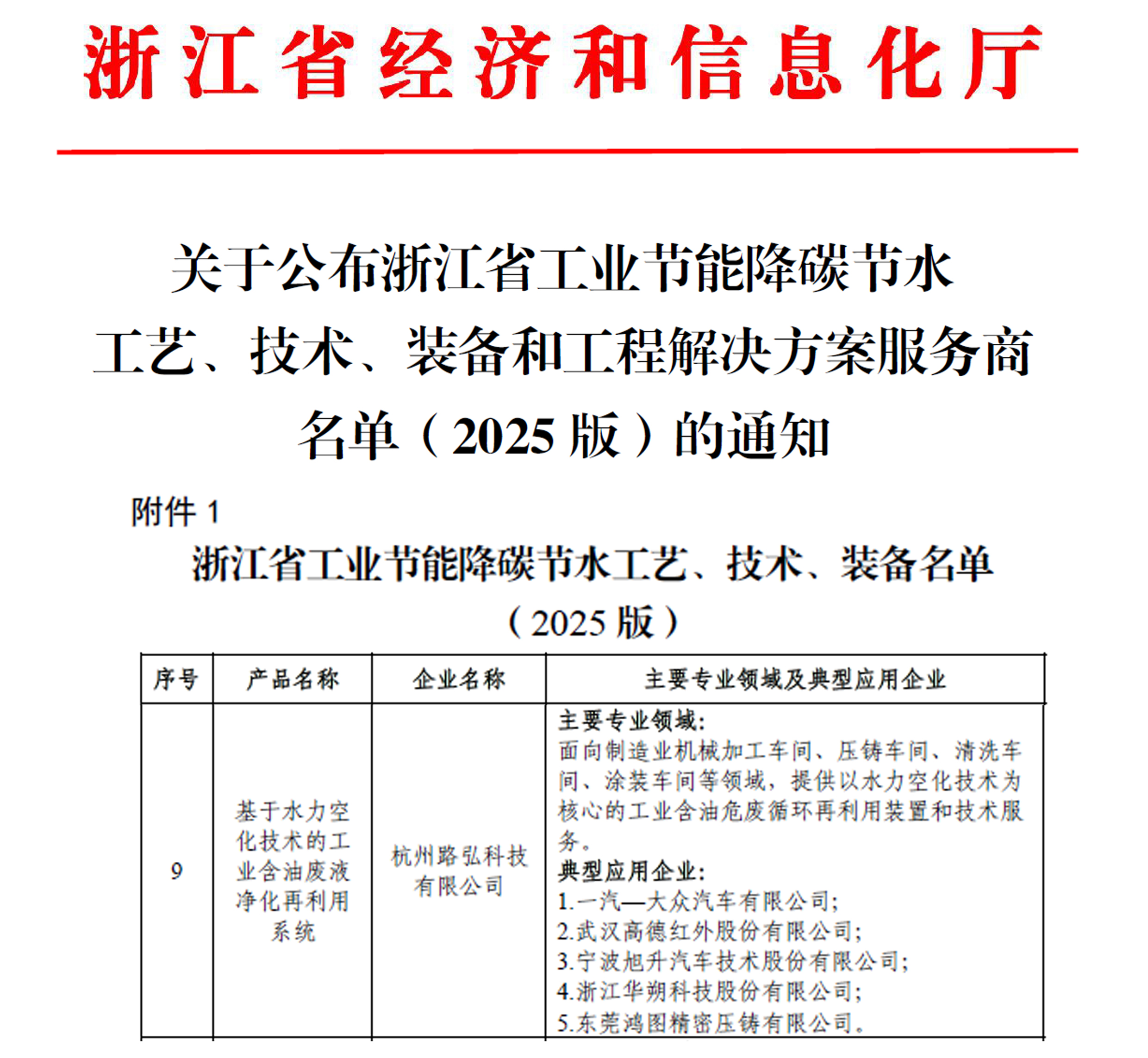 路弘科技是我國水力空化裝備產業化領軍企業,基于自主知識產權水力空化技術,公司已成功研制低溫脫脂除油節能減系統、涂裝電泳除菌系統、切削液凈化再利用系統、脫模劑廢液凈化再利用系統、清洗液凈化再利用系統、粉末精密過濾系統等系列化水力空化成套裝備,并推廣應用于汽車、汽車零部件、半導體、軌道交通、通信、電力、家電、鋼鐵、航天航空等制造業的涂裝車間、機加工車間、壓鑄車間、削車間和清洗車間等,幫助制造企業實現低溫脫脂除油、高效滅菌、過濾超細顆粒物、減少廢液排放、提質增效。